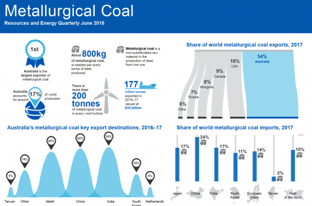 Australia’s metallurgical coal export earnings are set to reach a record $38 billion in 2017–18, driven by higher prices. Source: Department of Industry, Innovation and Science, Australia