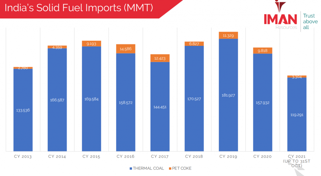 Thermal coal imports in Oct 2021 total 10.82 MMT 34.79% down over Oct 2020 and 21% up over Sep 2021…