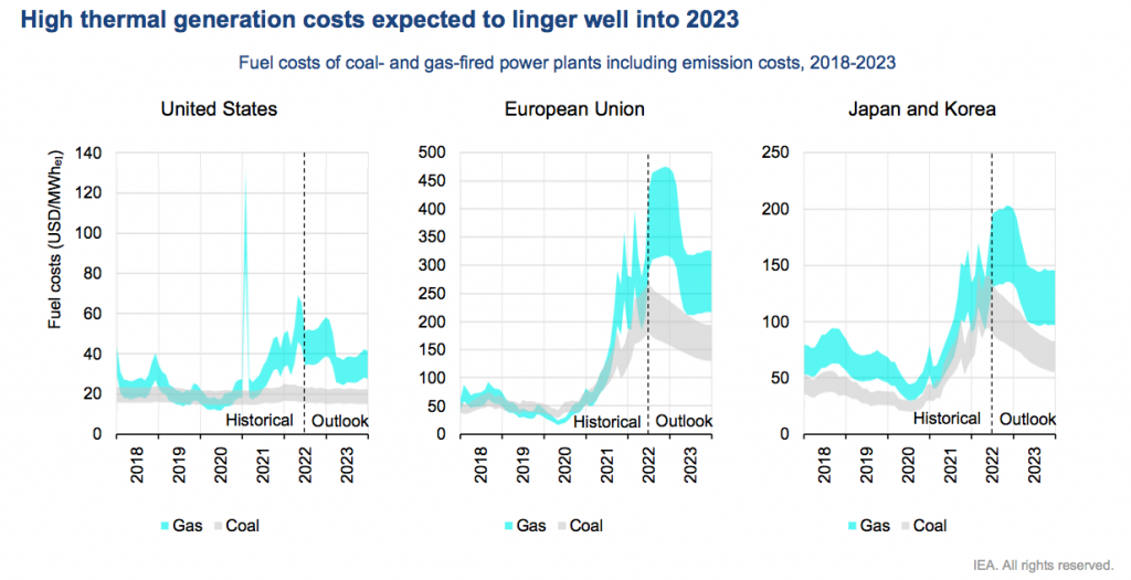 Tight natural gas markets are favouring coal-fired power plants. Due to high gas prices and supply constraints, coal is replacing gas for power generation in markets with spare coal plant capacity. In Europe, governments delayed coal plant phase-outs and lifted restrictions to increase the availability of coal generation, thereby reducing gas consumption to improve security of supply.