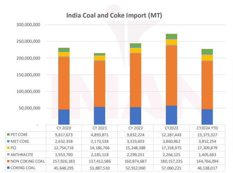 Russian coal exports to China down 11.0% in Jan-Sep 2024